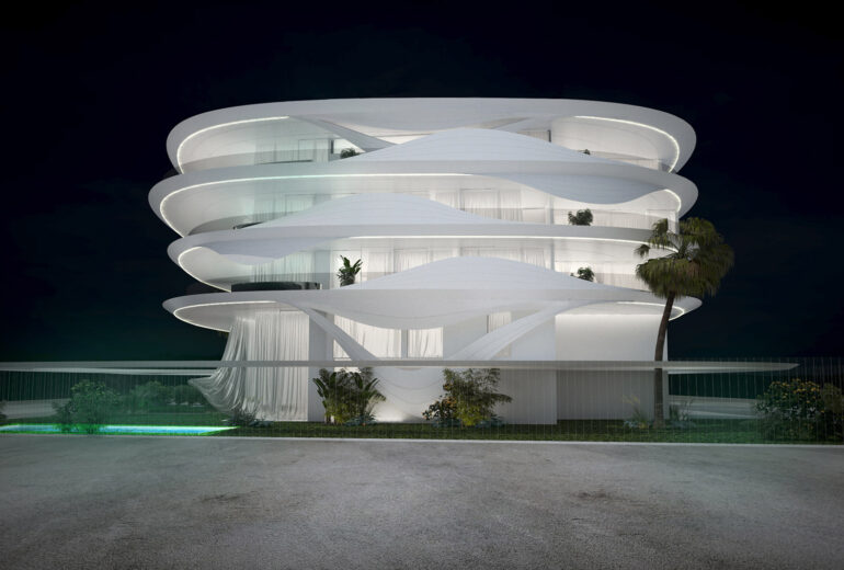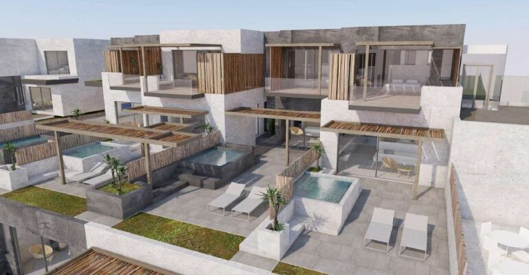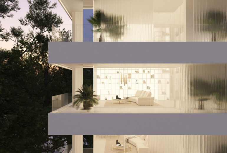 Νέα τετραώροφη πολυκατοικία με δύο υπόγεια, εσωτερικούς εξώστες, σοφίτες και πισίνες